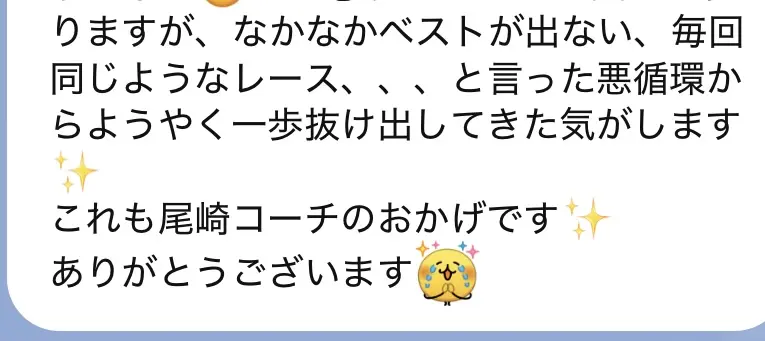 ⚫︎単発、年間問わず継続的なご受講で時間外もLINE等でいつでもご相談やレースの確認などをサポートしています。